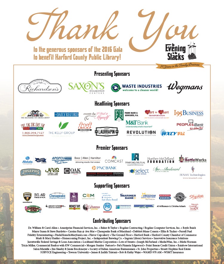 The 12th annual gala to benefit HCPL, 70 years in the Family Business, was held on Saturday, November 5, 2016 at the Abingdon Library.